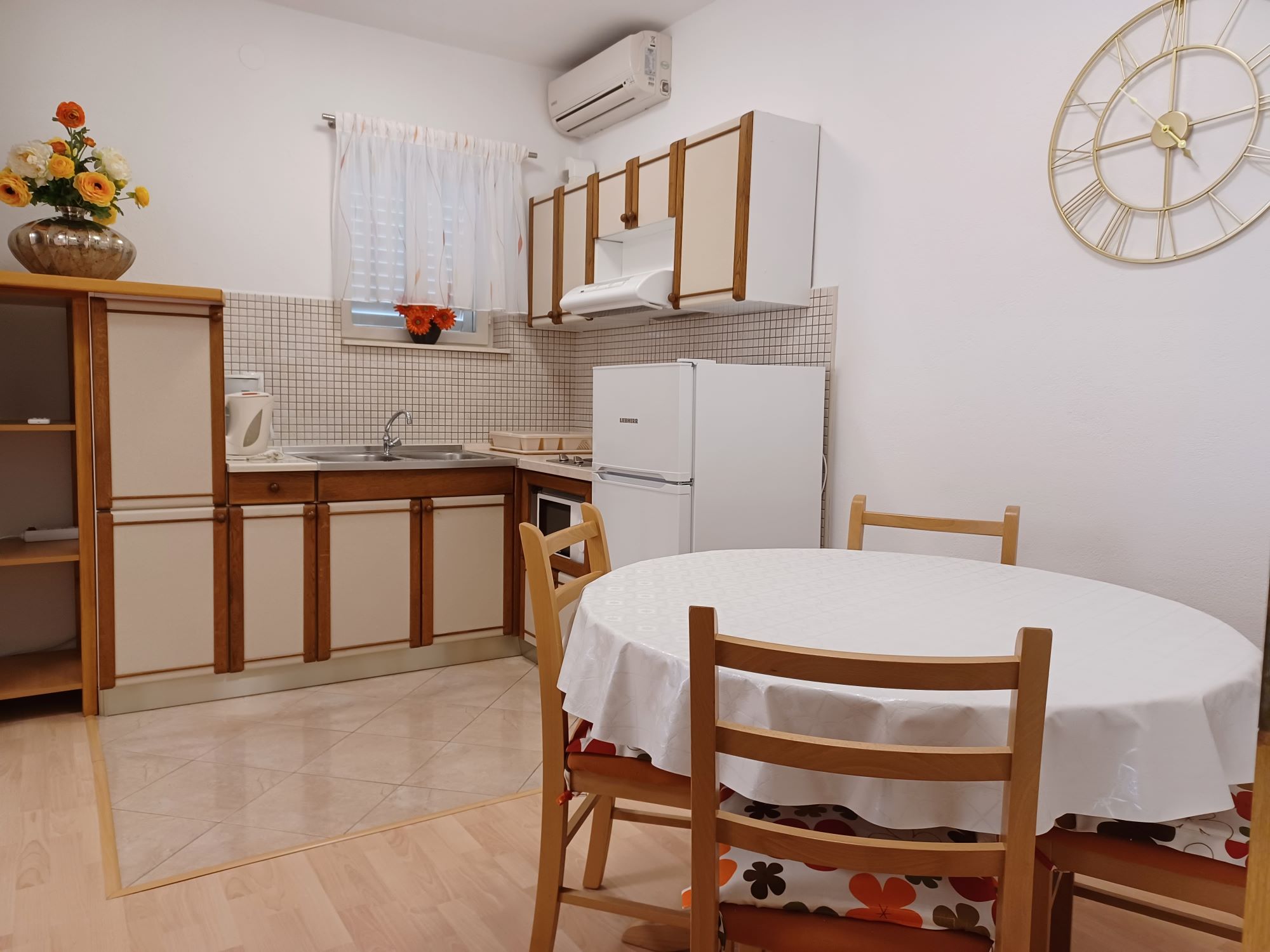 The kitchen is equipped with oven , fridge / freezer and all the necessary dishes. Dining room is equipped with a large table with chairs .