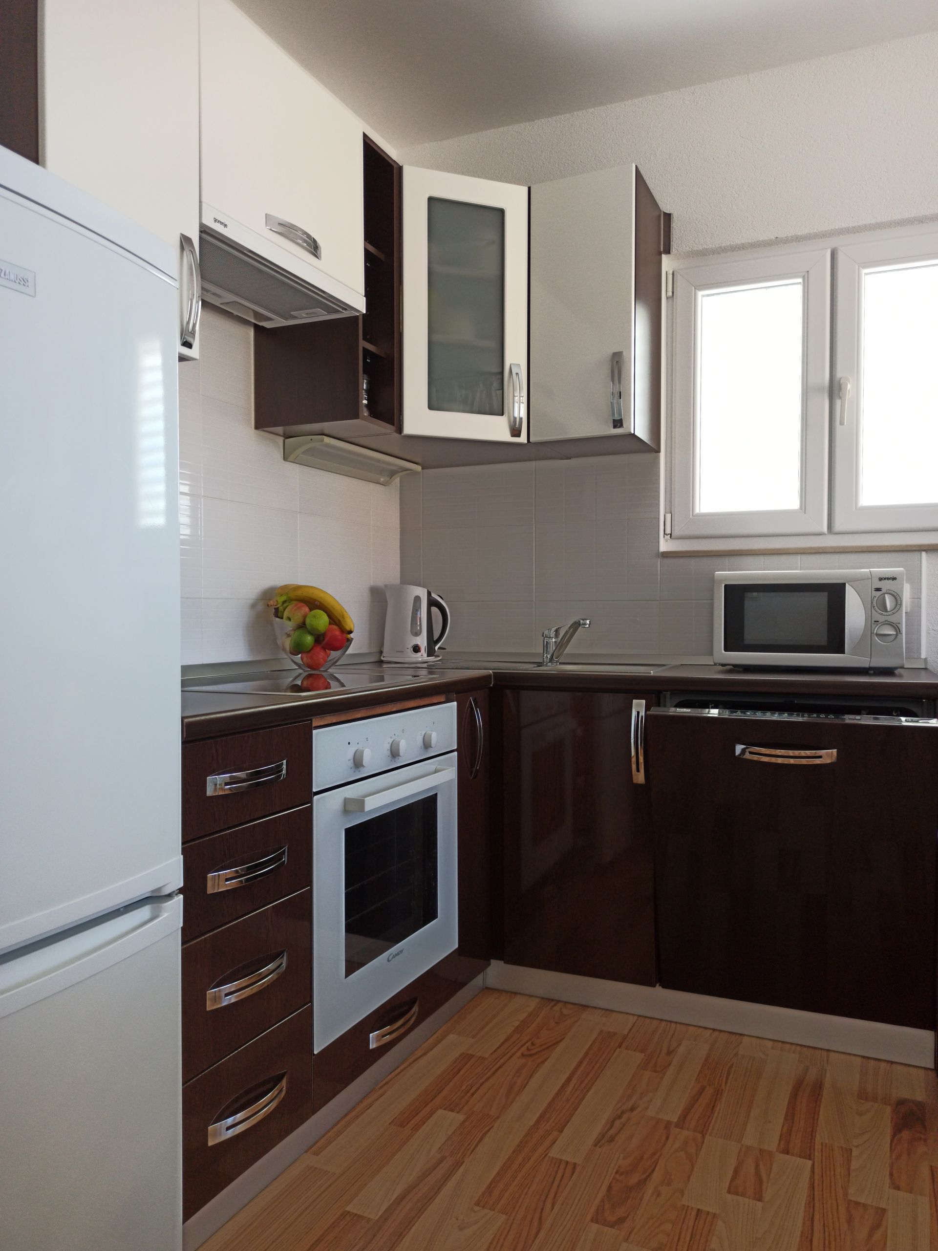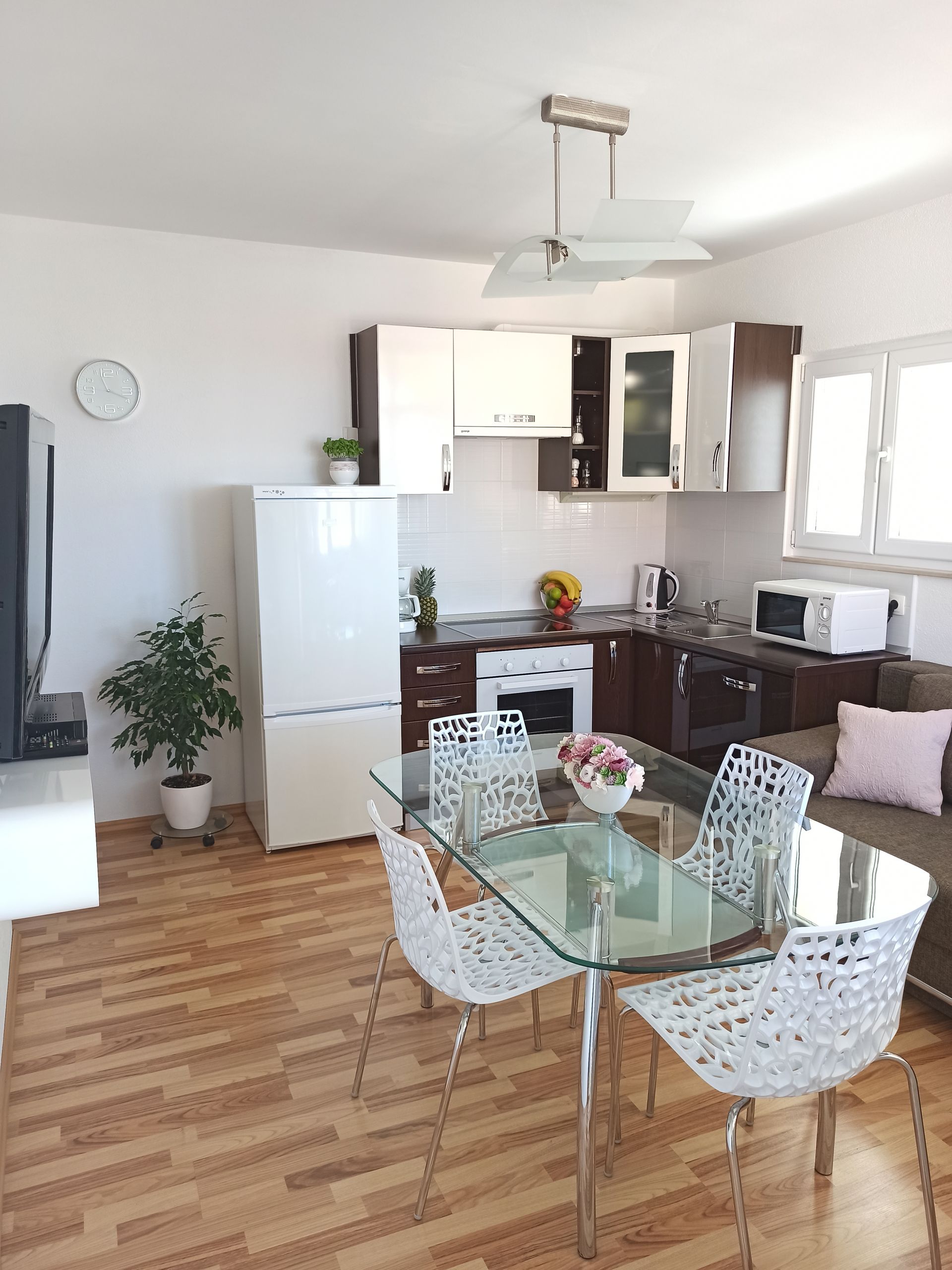 The kitchen is equipped with oven , dishwasher, fridge / freezer and all the necessary dishes. Dining room is equipped with a large table with chairs .