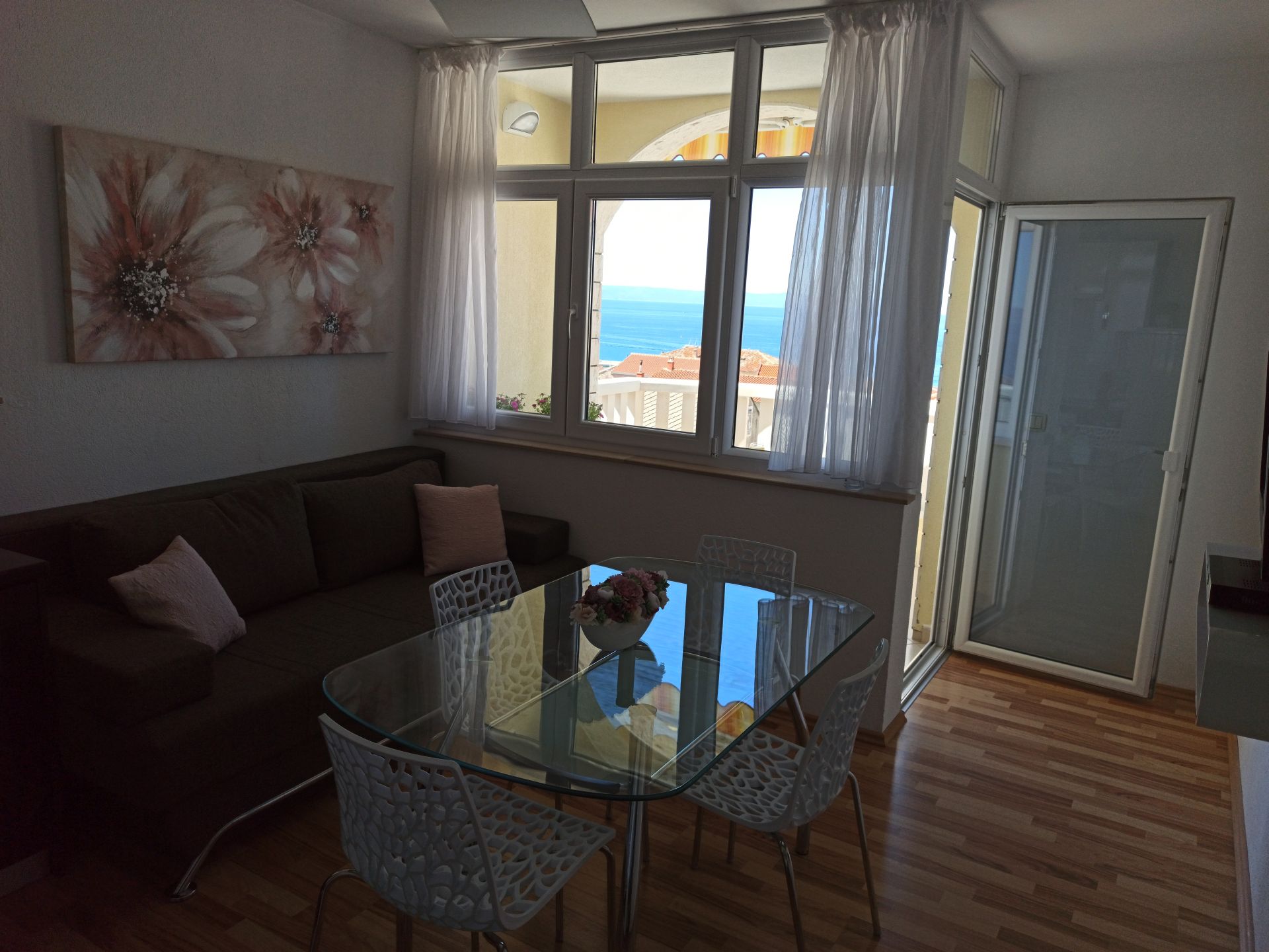 The apartment also has a lovely terrace overlooking the sea, the city and the garden with a beautiful flowers and mediterranean plants .