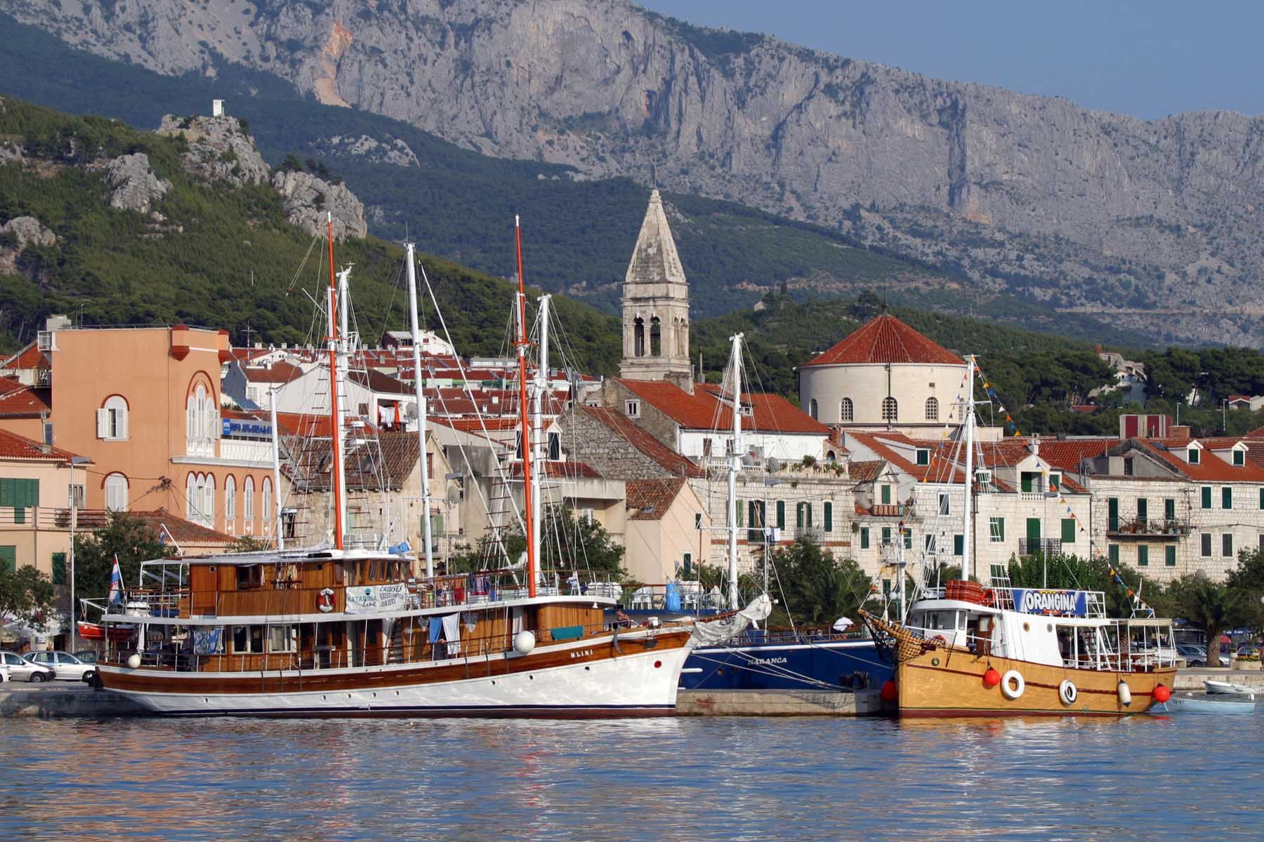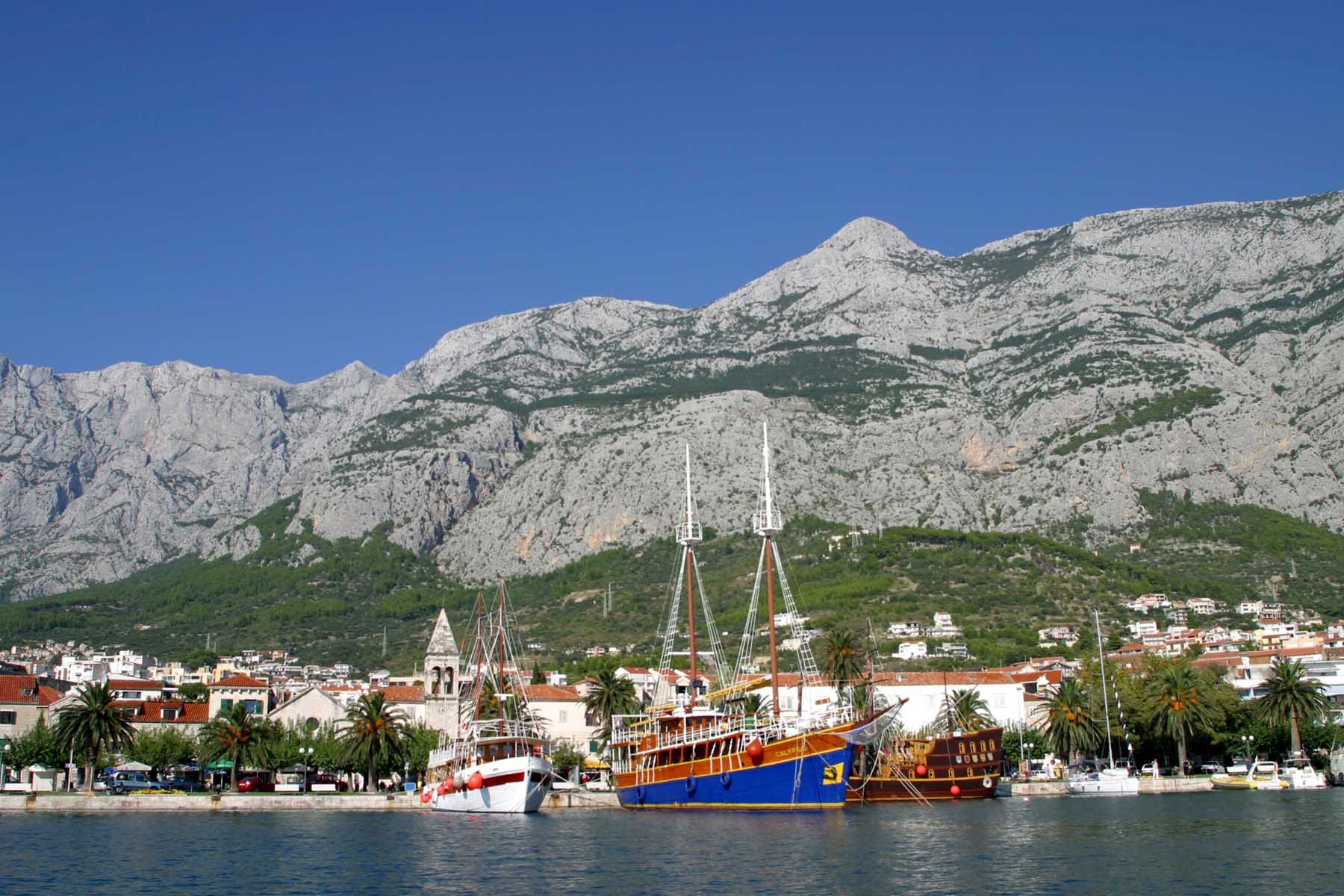 This attractive town and port is the center of the Makarska Riviera that is 50 km of coastal area in the foothills of Mt. Biokovo. A lot of cliffs and ridges form an impressive backdrop for many beautiful beaches. The base of town is protected from harsh winds and covered with lush Mediterranean vegetation - pine forests, olive groves, fig trees and orchards. With plenty of hiking and summer opportunities in such a spectacular natural environment, it is not surprising that tourism has a long history in this region. The recent war in former Yugoslavia has greatly disrupted the arrival of visitors, however, beyond the short summer season, which lasts about six weeks in July and August , in the town itself there are no major traffic jams. Makarska is the largest city in the region and makes a good base for exploring the coast and the mountain slope. Located on a large cove, bounded on the southeast with cape Osejava and the peninsula of Saint Peter in the northwest, mountain Biokovo above the town dominates the landscape. Also Makarska offers a very exciting night life on the coast, and is extremely popular among the young Croatian and Bosnia and Herzegovina people. Roads and trails that crisscross the mountain range can be overwhelming for hikers, but less energetic people can simply relax on the beach and watch the play of light and shadow on the mountain rocks.